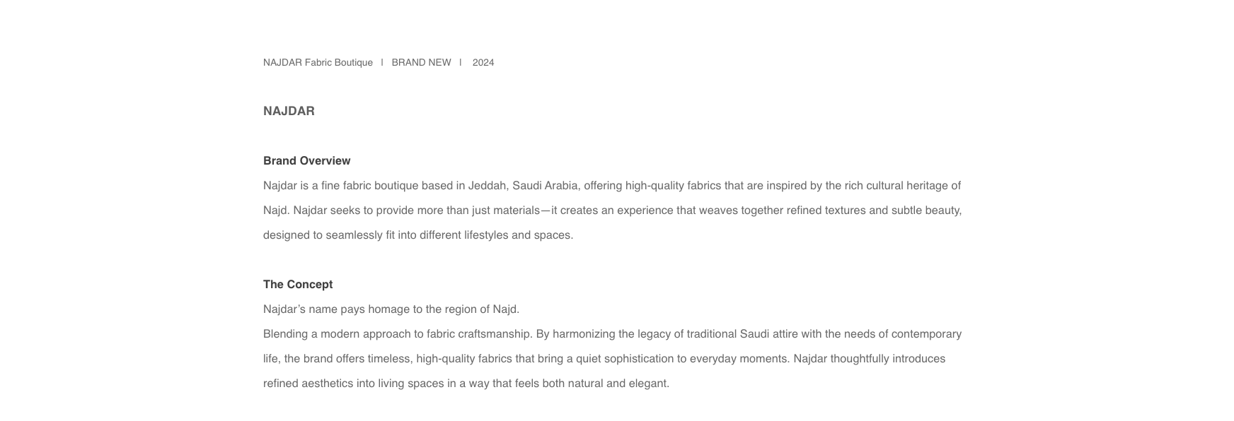 NAJDAR – Branding / Tone of voice NAJDAR – Branding – Tone of voice To View Other Project Click the Link : Tonelab Homepage MOODIFY PORTFOLIO Foundry Chibidash Najdar Stays