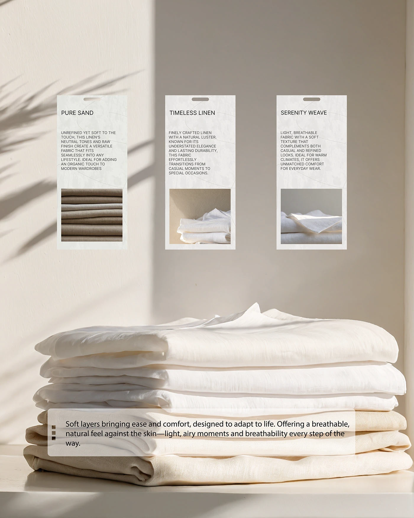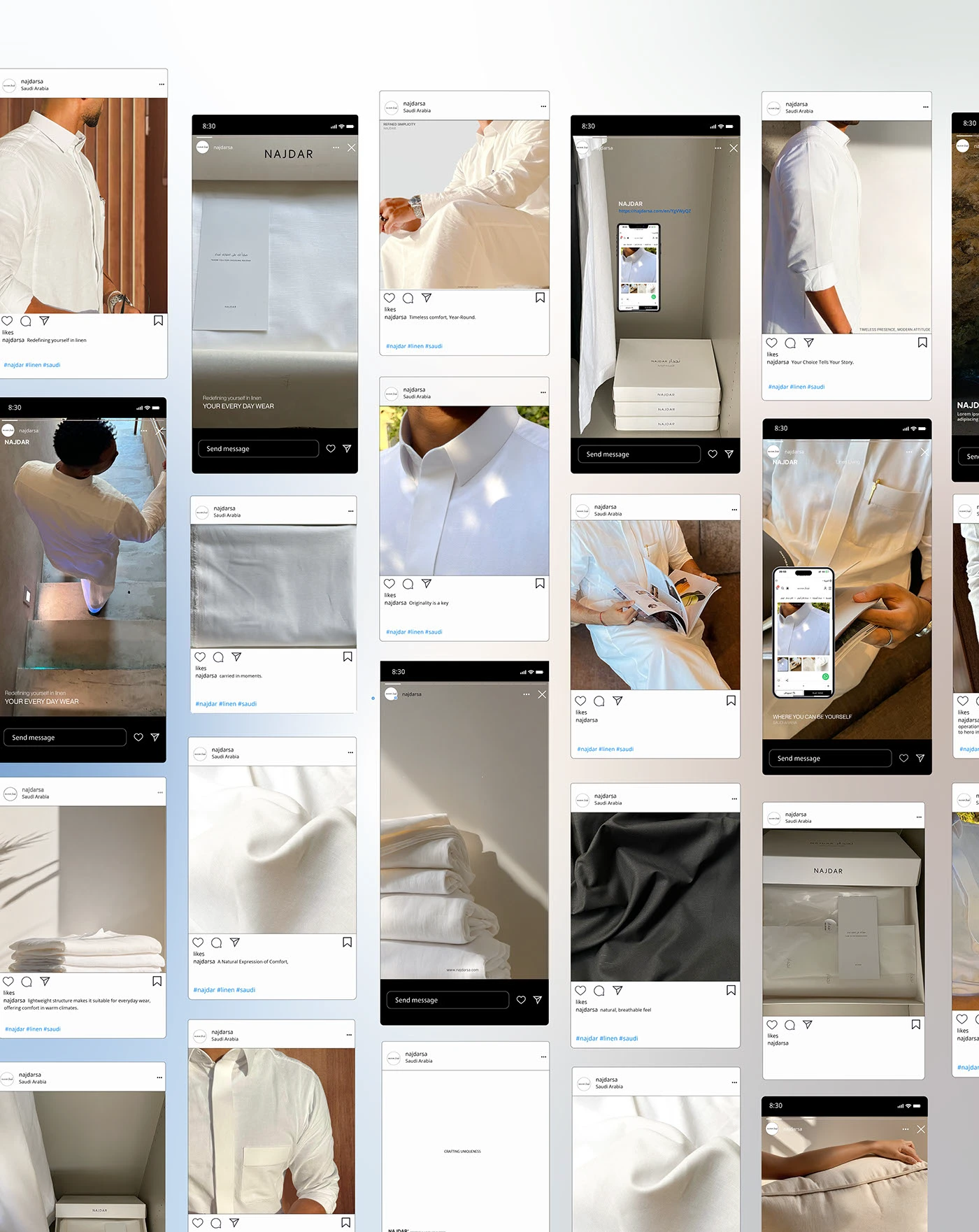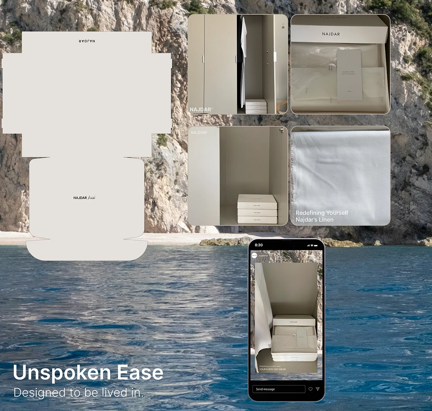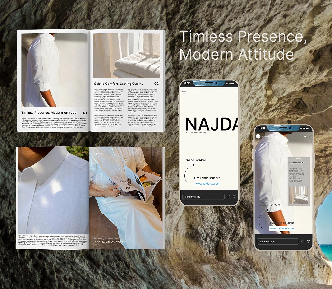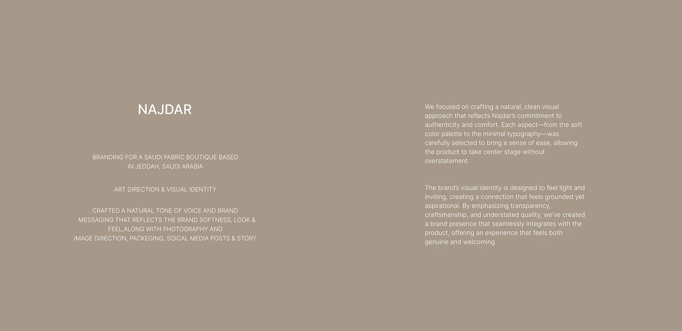 Art direction and visual identity for a fine fabric boutique based in Jeddah, Saudi Arabia — branding, tone of voice, photography direction, packaging, and social media content.