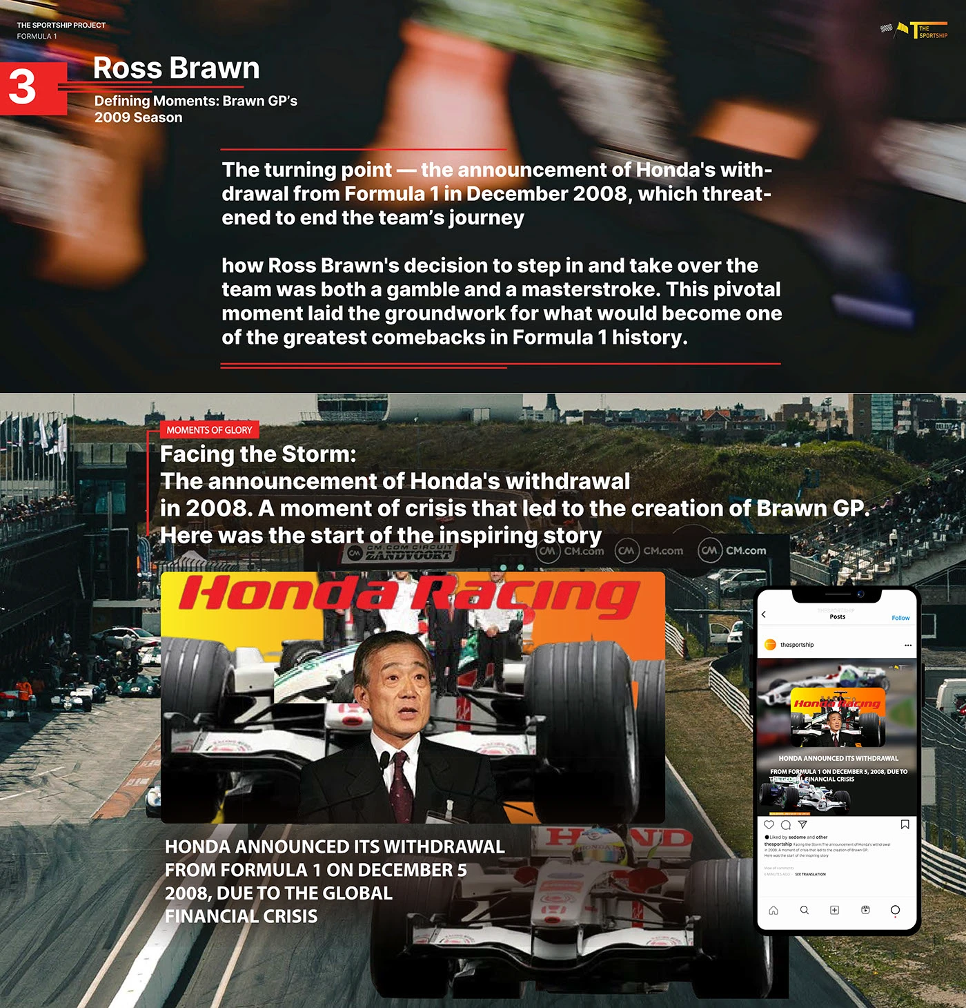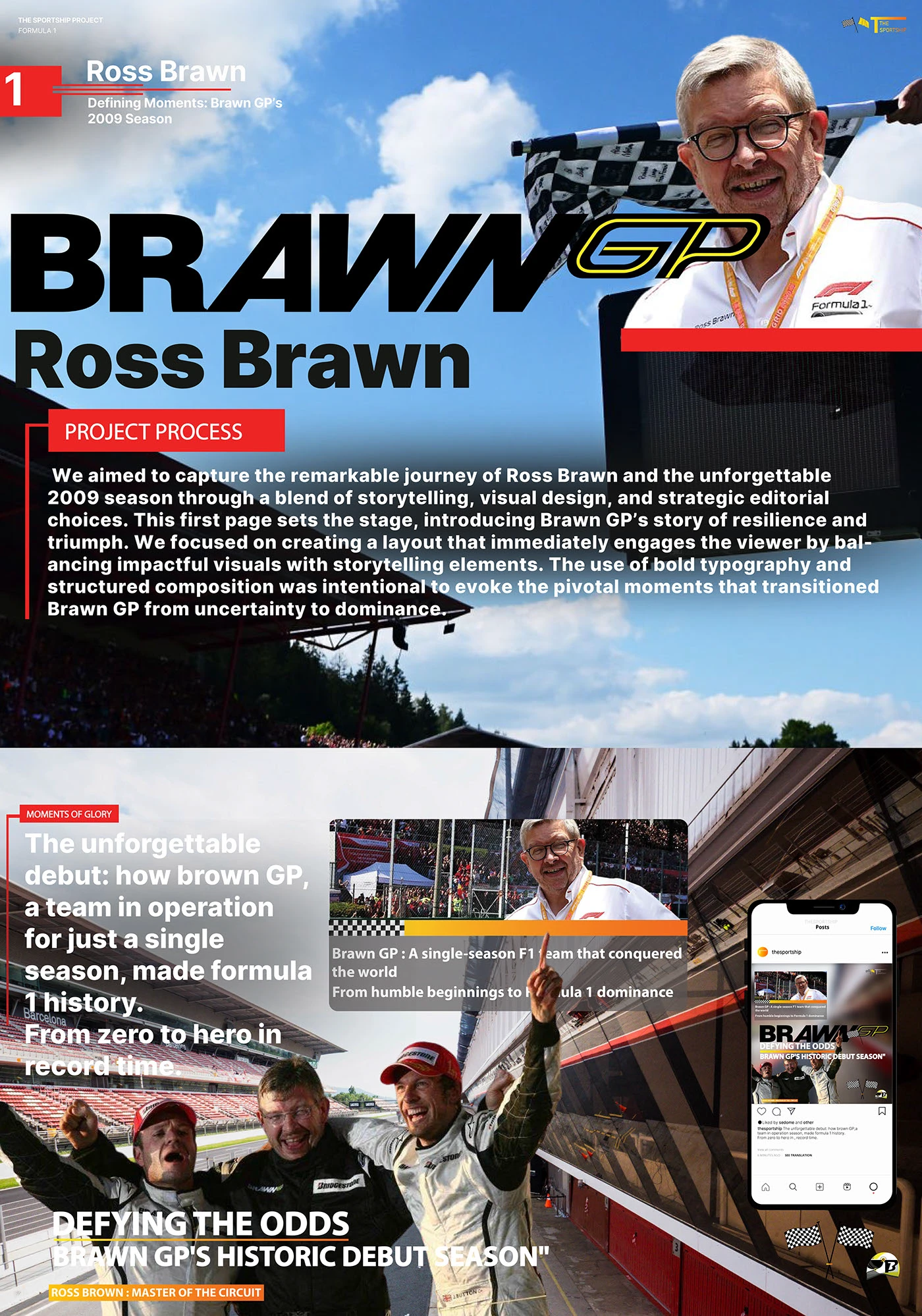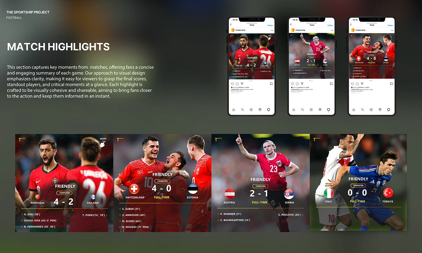 End-to-end brand development for a sports media platform — from logo design and color systems to editorial layouts, social content creation, and visual storytelling across multiple series.