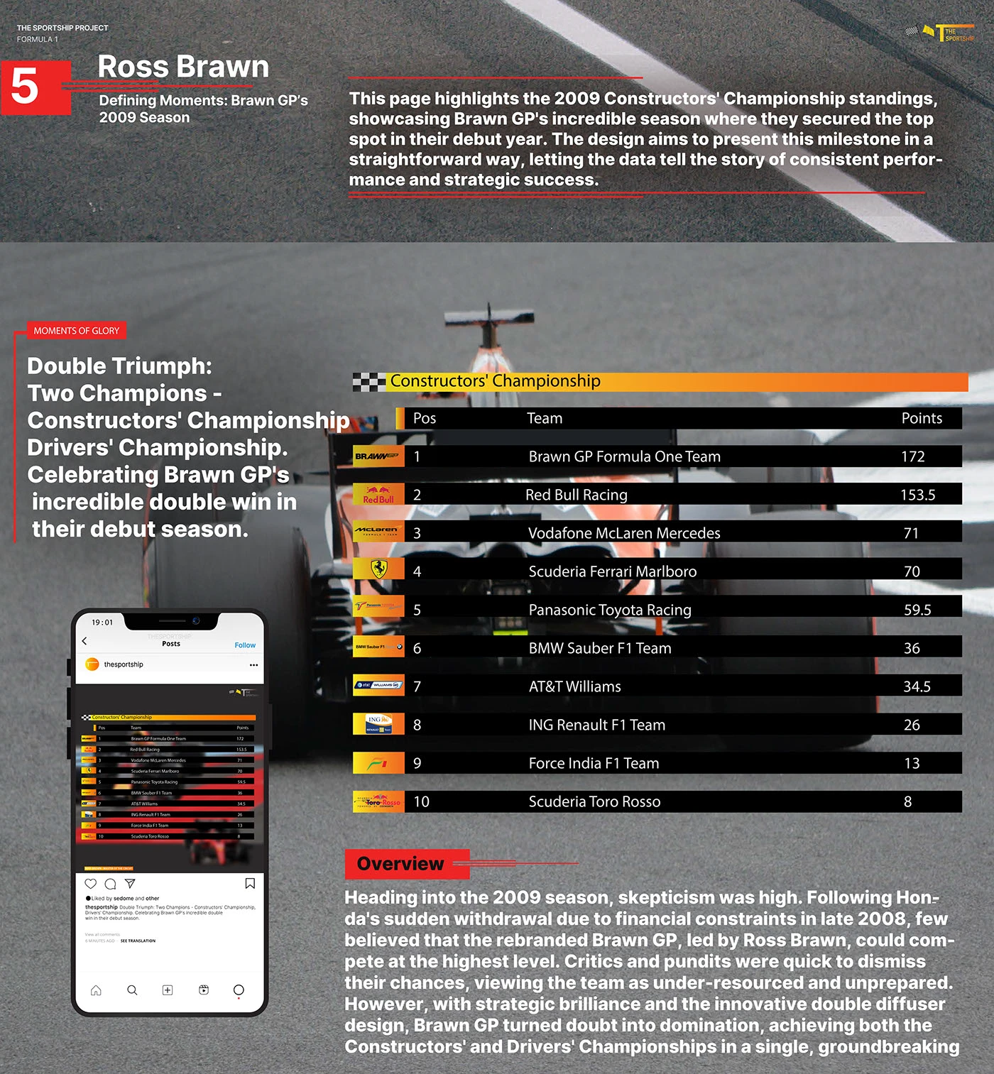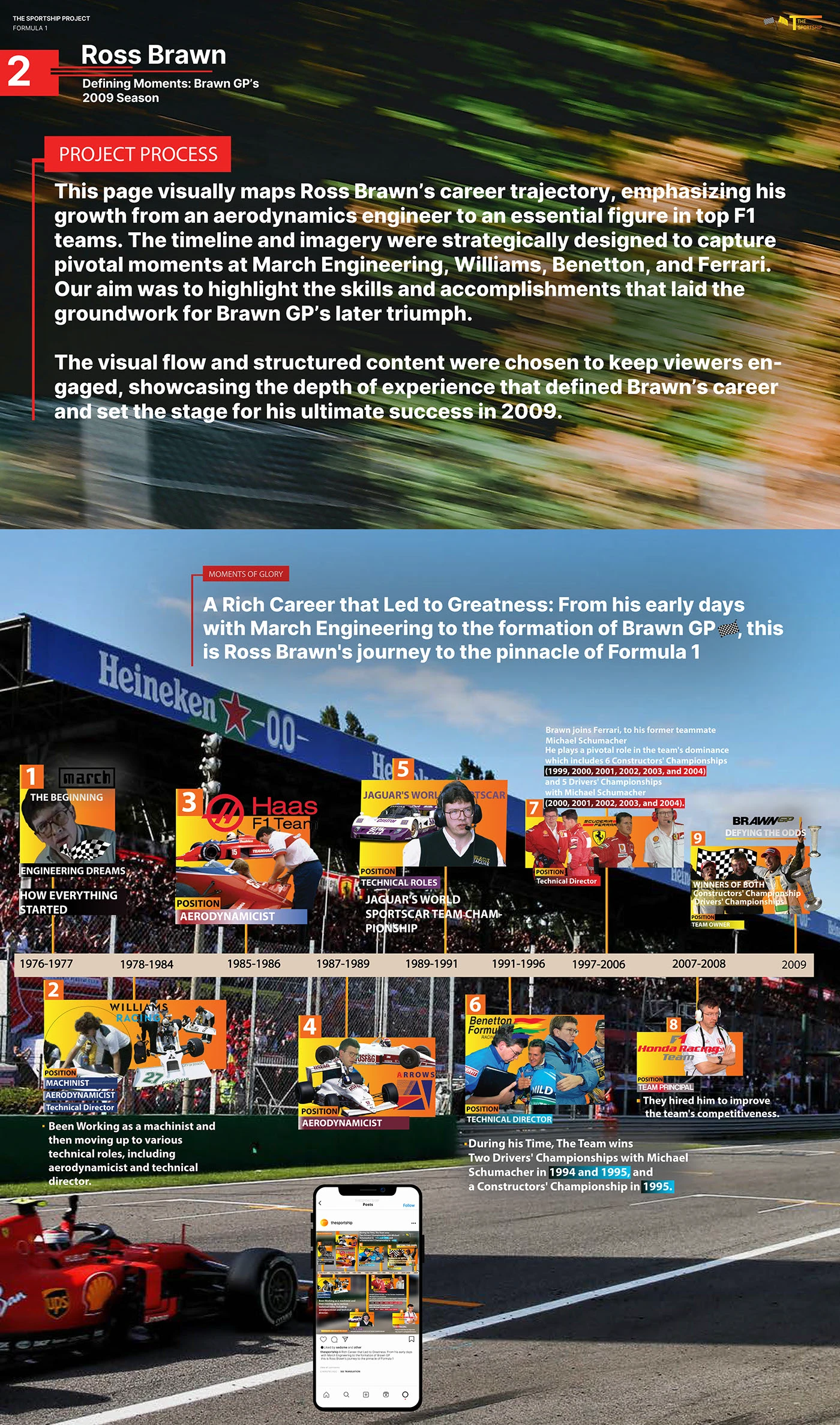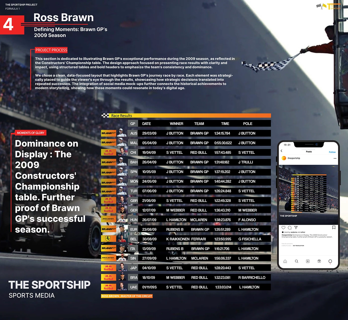 End-to-end brand development for a sports media platform — from logo design and color systems to editorial layouts, social content creation, and visual storytelling across multiple series.